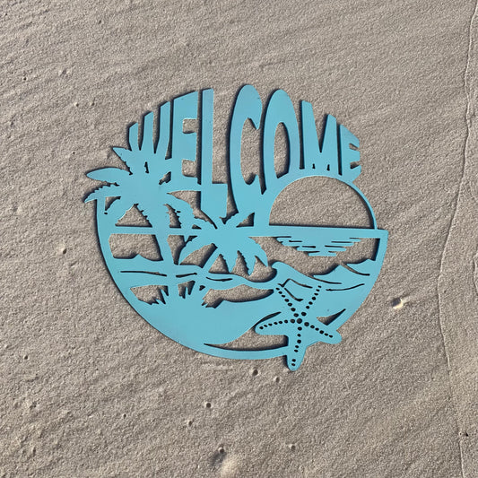 Beach Vibes Sea Turtle | Hand-Painted | Metal Wall Art