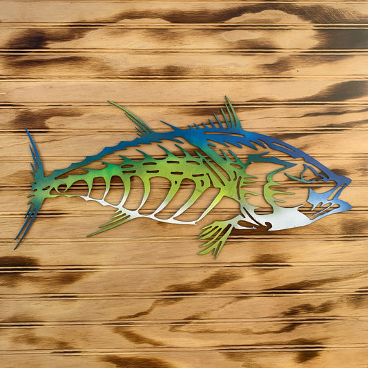 Largemouth Bass | Heat-Colored | Metal Wall Art